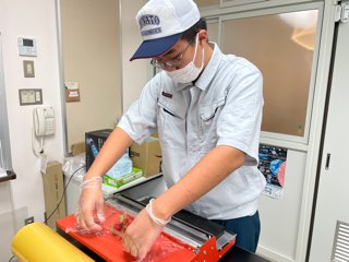 12月10日(水) 生産サービス科2年生 環境園芸の授業で、防災研修で使用するお米を1人分毎に袋詰めを行いました。