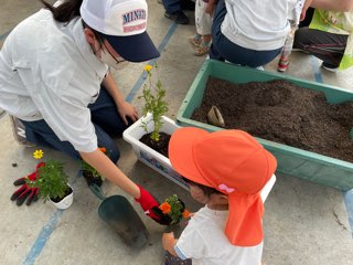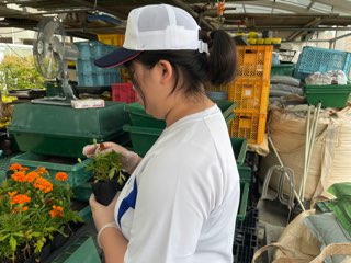 11月20日(木) 日亜化学工業(株)で植栽活動を行いました。天候にも恵まれ、約2000本のビオラ苗の植栽を行いました。授業で育てた苗を植栽することができました。仕事の大変さ・大切さを感じるとともに達成感を味わうことができました。